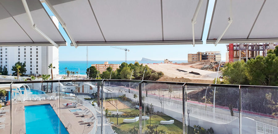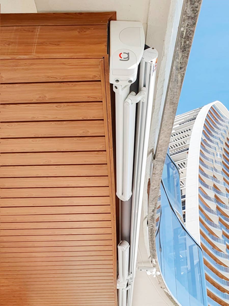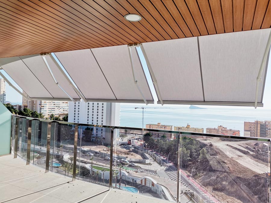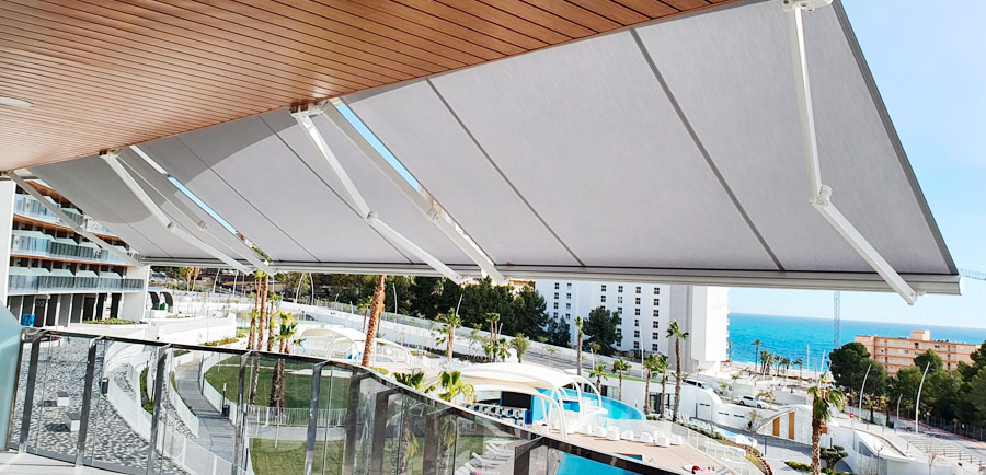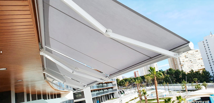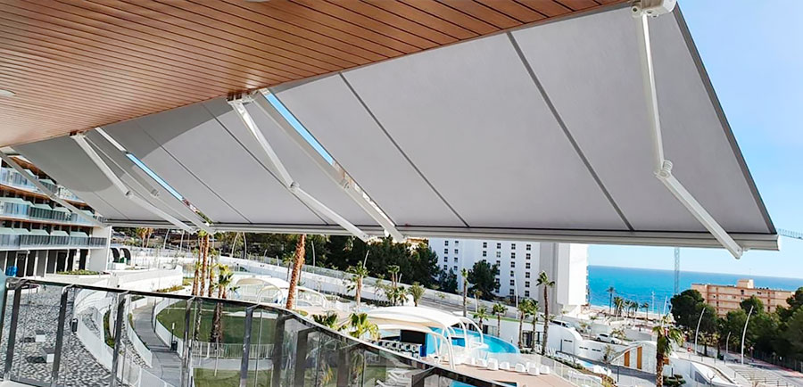 Están pensados para terrazas de viviendas, cafeterías, áticos, etc., por la protección que ofrecen frente al sol, al tener unas dimensiones mayores que el resto de sistemas. Con una regulación de la inclinación de los brazos mucho más precisa y con mejoras notables en la fijación, tanto a pared como a techo o entre paredes.