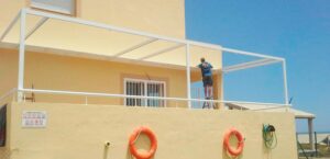 También pueden ir con estructura tipo portería (con 2 pilares y larguero), pared portería o autoportante (con pilares), siendo el material de estas estructuras en aluminio de diferentes grosores, dependiendo de las dimensiones del toldo o de la preferencia del cliente. Somos profesionales y podemos fabricar e instalar su toldos para pergolas.